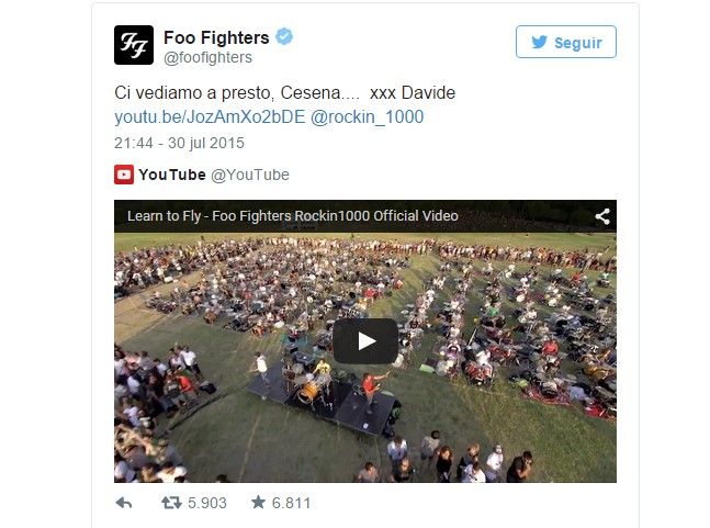 Y para asegurarse de que el mensaje fuera recibido, Dave Grohl , líder de Foo Fighters, grabó un video donde -hablando en italiano- agradeció a los fans y dijo que el video era “bellísimo” y prometió que su banda pronto llegaría a Cesena.