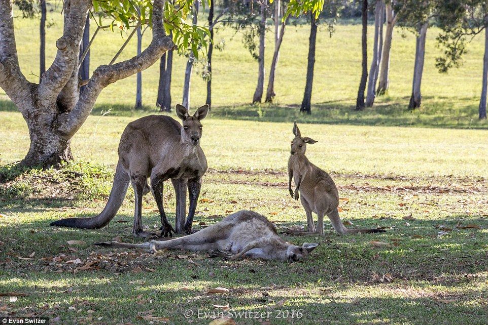 Después de su muerte, tanto el joven como su compañero canguro se quedaron cercanos al cadáver, en posición de que estaban haciendo guardia.
