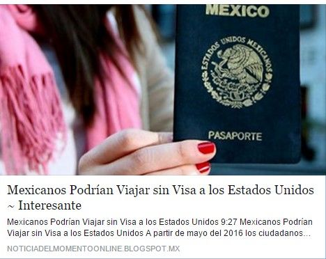 En redes sociales circulan notas que afirma que a partir de mayo del 2016 , “mexicanos podrían ingresar a territorio norteamericano con tan salo presentar su pasaporte ordinario con una estancia no mayor a 30 días pero no podrán trabajar, tendrán que salir del país antes del plazo acordado, esta decisión fue tomada mediante la resolución del Departamento de Estado de los Estados Unidos 2015”.