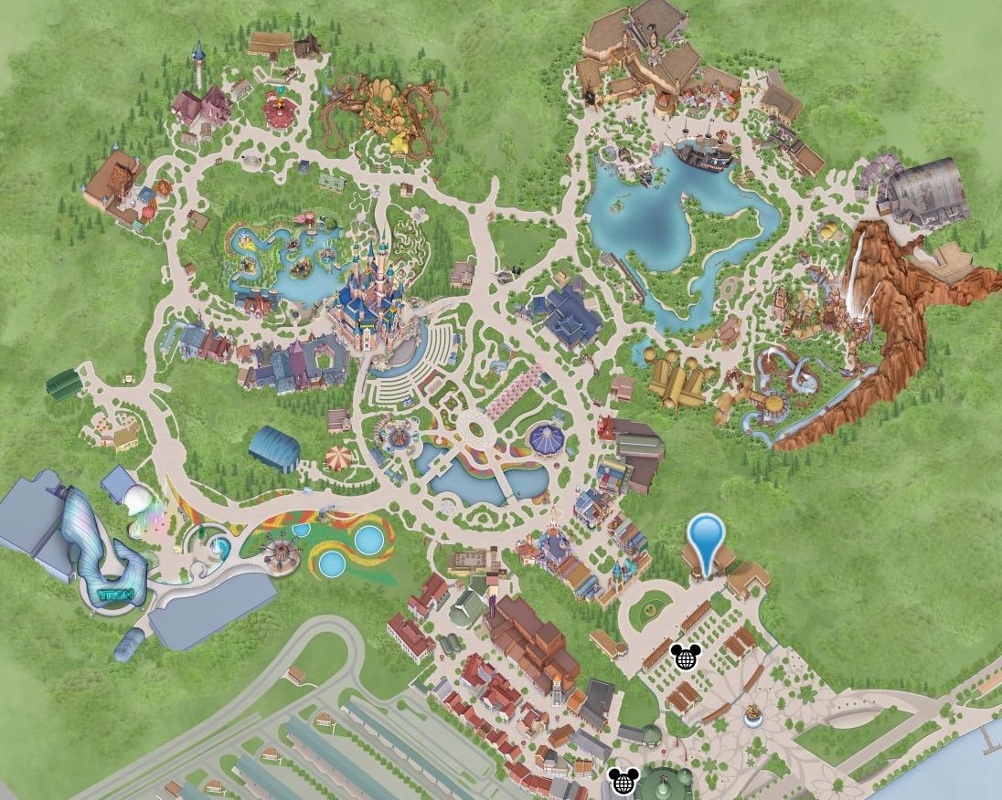 El parque tendrá una superficie de 24.7 kilómetros cuadrados, en la Zona Internacional de Turismo y Resorts (ZITR) de Shanghái, para convertirse en el mayor parque de ocio del mundo, dividida en tres zonas claramente diferenciadas: el parque de Disney -de 3.9 kilómetros cuadrados-, una zona de recreación gratuita con un lago y un jardín botánico en la que también se encuentra el hotel oficial, y un parque ecológico con diferentes atracciones y multitud de restaurantes.