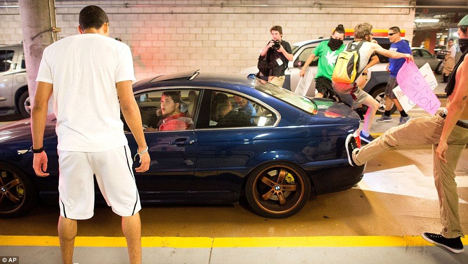 Algunos golpearon los automóviles de los seguidores de Trump cuando salían del mitin, y persiguieron a los que se iban a pie para asustarlos.