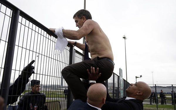 Una reunión sindical de la aerolínea francesa Air France, terminó con seis personas detenidas, además de dos ejecutivos con la ropa rasgada, lo anterior tras suscitarse una riña al interior de un recinto donde se negociaba la desaparición de más de dos mil puestos de trabajo.