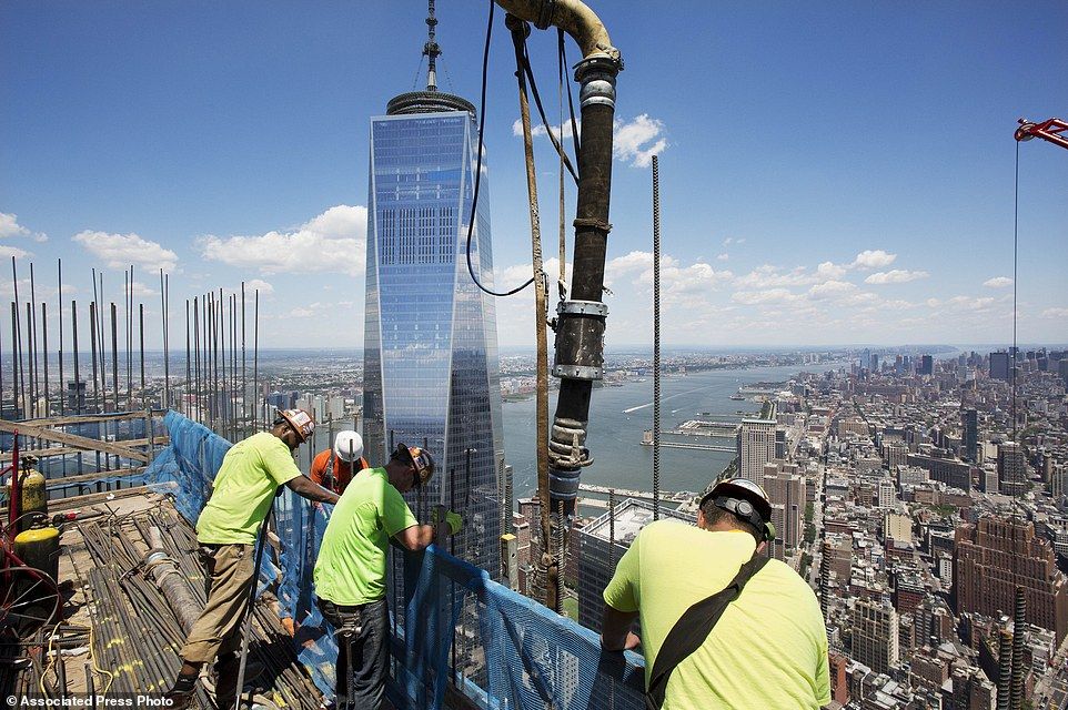 Localizado en el 175 de Greenwich Street, el 3 World Trade Center alcanzará su altura final de 328 metros cuando se coloque un cubo final de hormigón sea levantado en su lugar.