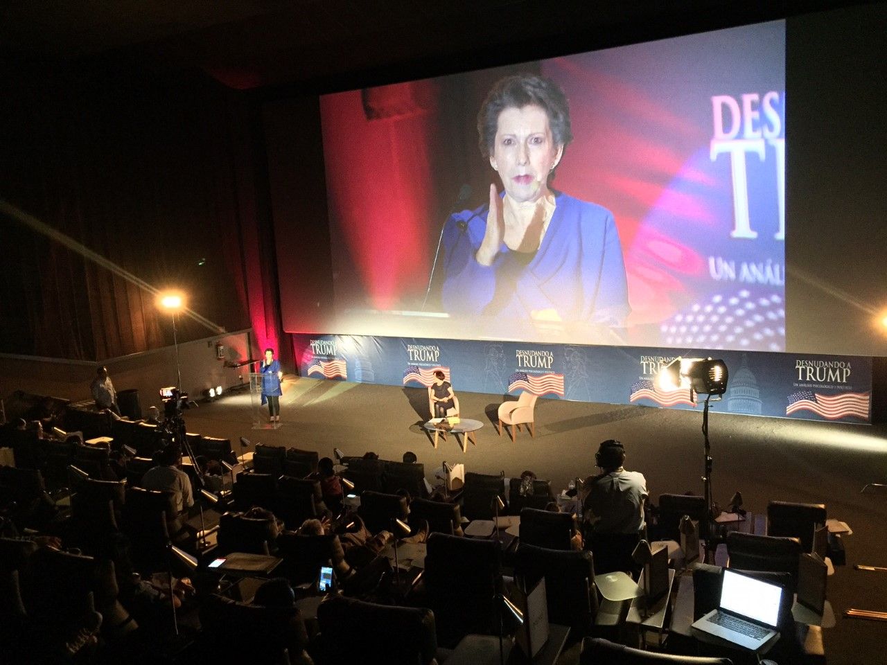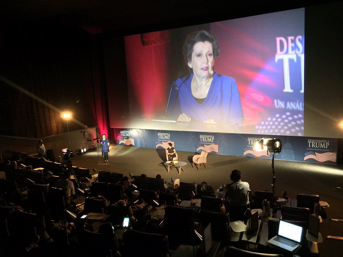 “Él tenía fríamente calculado qué decir para generar polémica y así enardecer el espíritu ‘gringo’ de ‘God Save America’ (Dios Salve a América)”, dijo la especialista que expuso un perfil psicológico del republicano durante la conferencia “Desnudando a Trump”, transmitida en vivo a diversas salas de Cinépolis a todo el país.