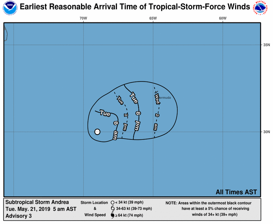 Para el miércoles se estima que ‘Andrea’ cruzará el sur de Bermudas con vientos de 55 kilómetros por hora.