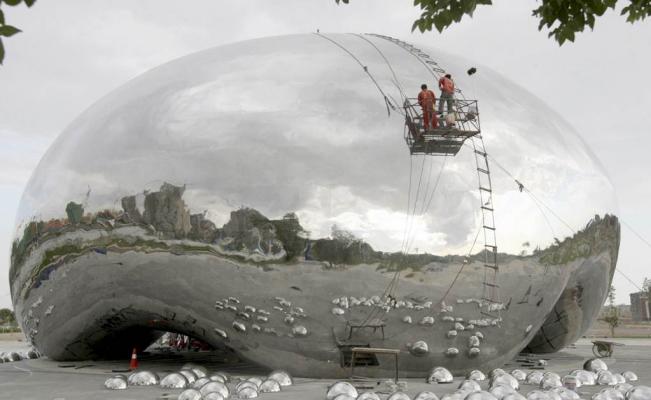 Los reportes incluyen fotografías de la escultura china, que se asemeja a la de Kapoor. No se supo de inmediato quién creó la “burbuja de petróleo” china.