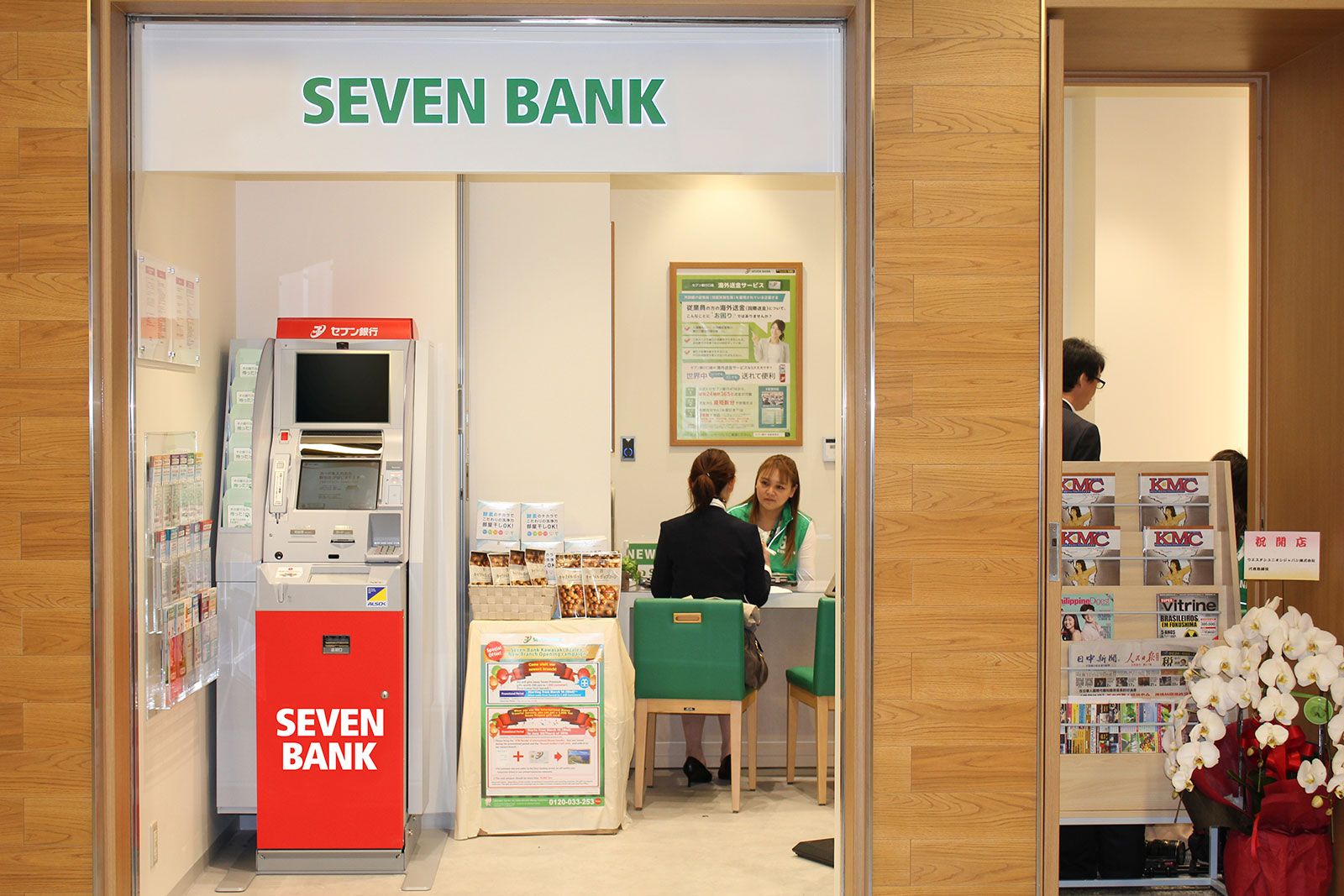 En Japón, Seven es uno de los dos únicos bancos en Japón que aceptan tarjetas de crédito y débito extranjeras, de acuerdo con la Organización Nacional de Turismo de Japón.