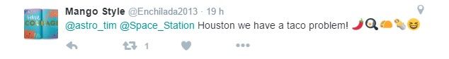 El astronauta Tim Kopra publicó una foto, a través de su cuenta de Twitter, de un taco espacial.