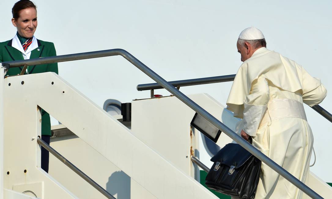 El trabajo de un papa nunca termina. Ni siquiera cuando vuela.