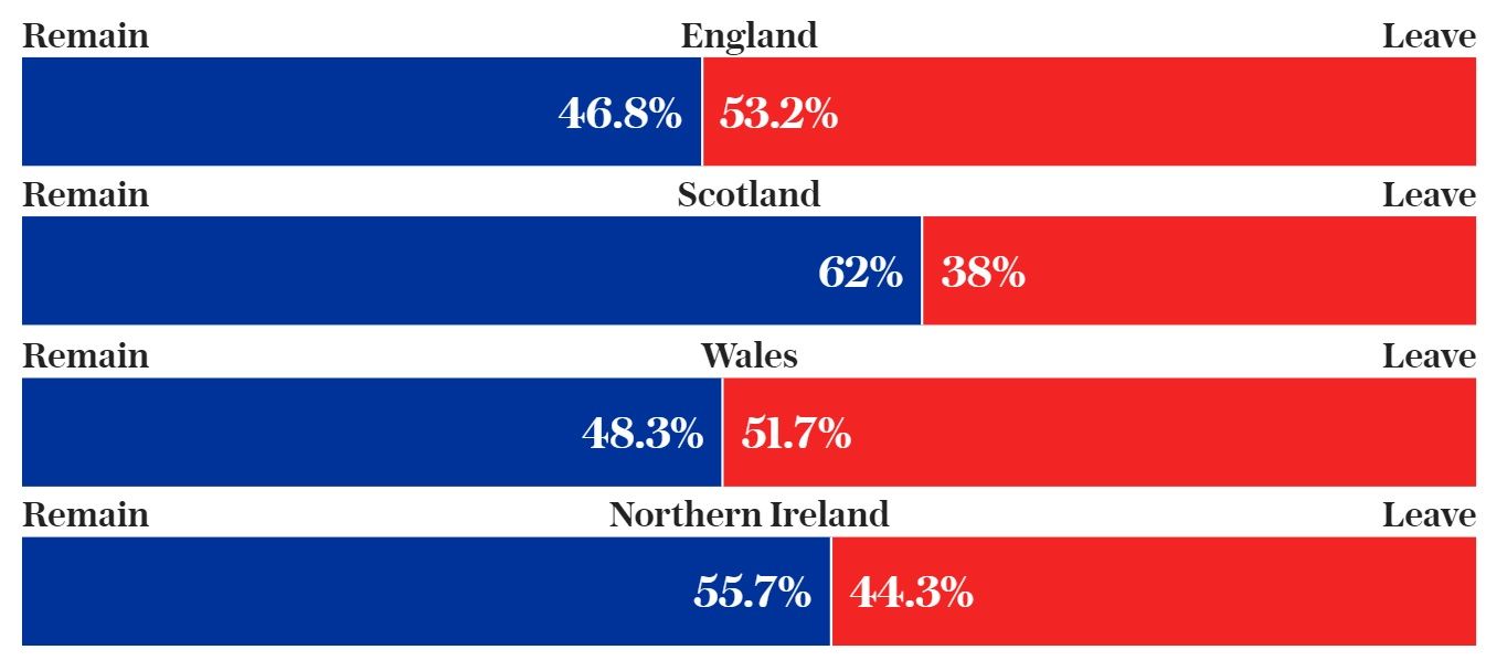 No todos los países miembros de Reino Unido votaron a favor del Brexit. Sin embargo, algunos votos fueron más decisivos, principalmente