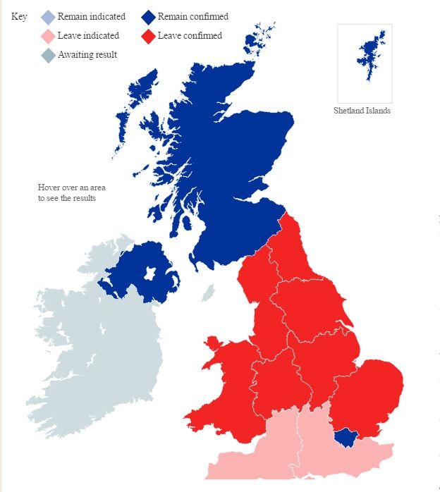 Sin embargo, cuando se superó la mitad de la contabilización de los votos, la tendencia cambio, al punto de volverla irreversible. 46 millones y medio de personas votaron, marcando una impresionante participación para un llamado a votar que no fuera en el marco de una elección parlamentaria, y significó un alto interés por los habitantes del Reino Unido por el tema.