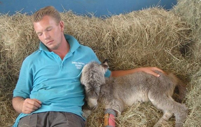 Gracias a las atenciones del santuario de Marina Melis, Maroesia que tenía dos semanas de nacida pudo recuperarse poco a poco, gracias a la presencia de otros asnos.