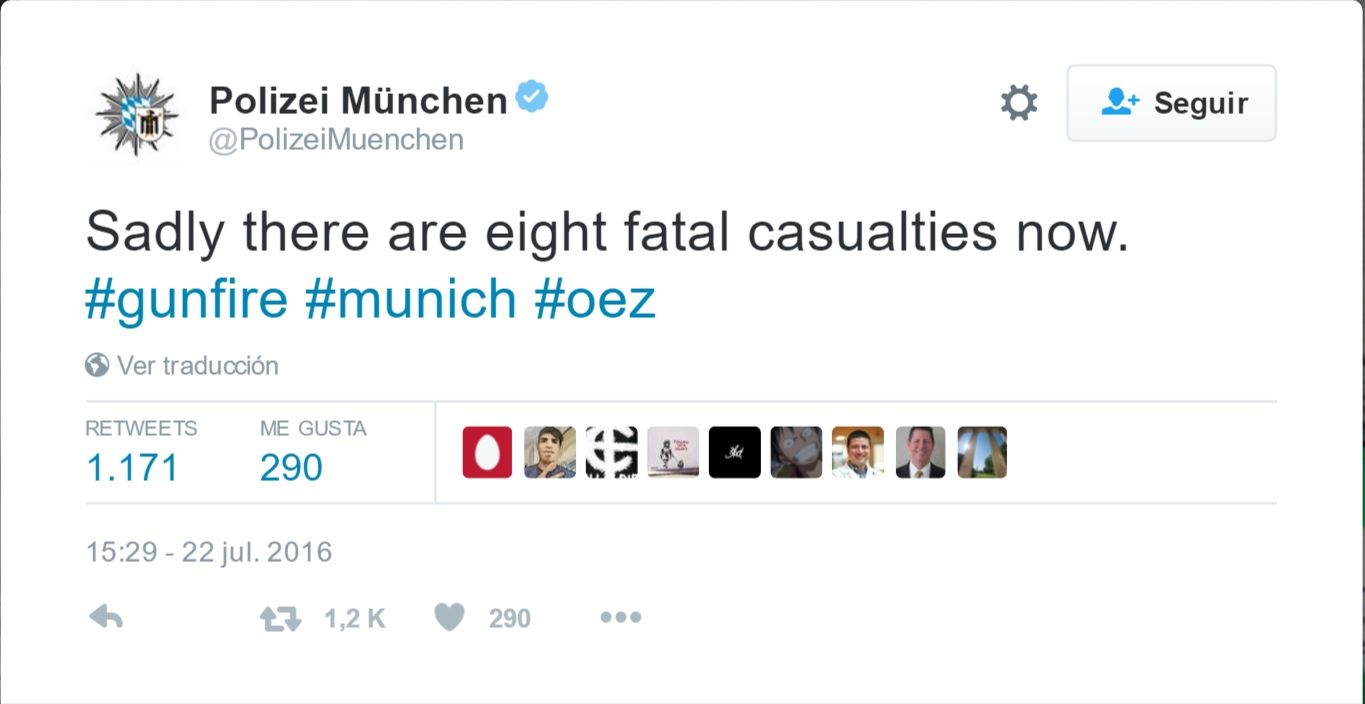 Por su parte, las autoridades alemanas han declarado el estado de emergencia en Múnich. La policía de Múnich pidió a la gente evitar los lugares concurridos.