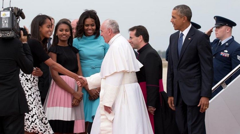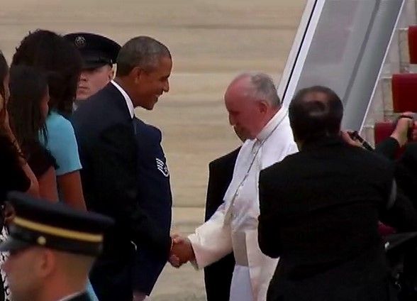 Generalmente, el presidente Barack Obama no recibe a los jefes de estado en la base aérea, sin embargo hoy fue un gesto de cortesía hacía el papa Francisco. El día de mañana se llevará a cabo la recepción oficial.