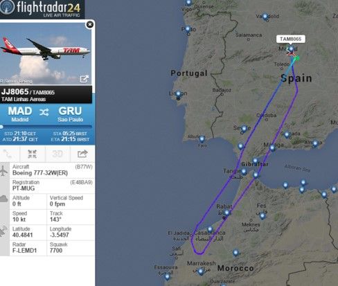 El vuelo JJ8065 de la aerolínea TAM de Madrid a Sao Paulo se desvió después de andar sobrevolando el territorio de Marruecos.