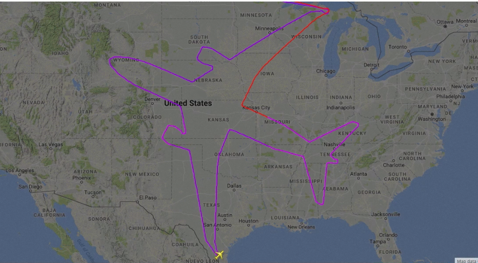 Como si fuera un juego gigante de unir los puntos, un Boeing 787 fue el protagonista de un curioso momento al trazar el dibujo de un avión de su misma clase volando por todo Estados Unidos, que comenzó la tarde del miércoles y culminó la mañana del jueves.