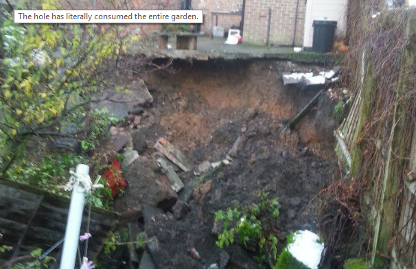 Un impresionante agujero de 9 metros de profundidad se formó obligó a un hombre del Reino Unido a abandonar su domicilio