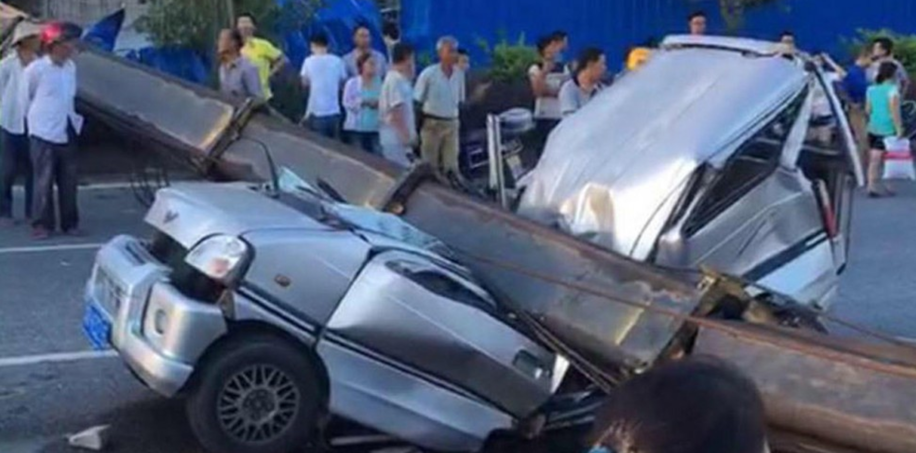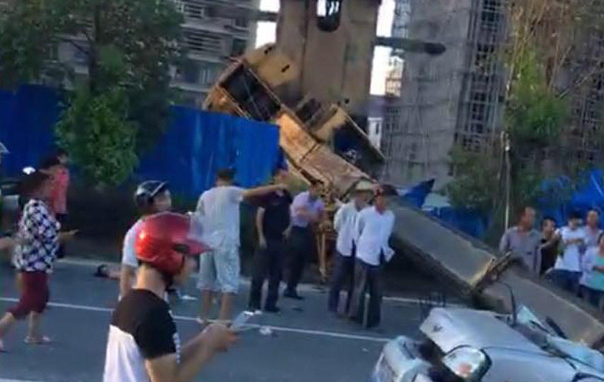 Siete personas perdieron la vida y tres más resultaron heridas cuando la pluma de una grúa cayó sobre el toldo de un vehículo que circulaba cerca de una construcción al sur de China.