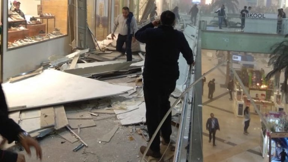 El desplome del techo causó daños en comercios, según imágenes de canales locales de televisión, vídeos y fotos que circularon por las redes sociales.