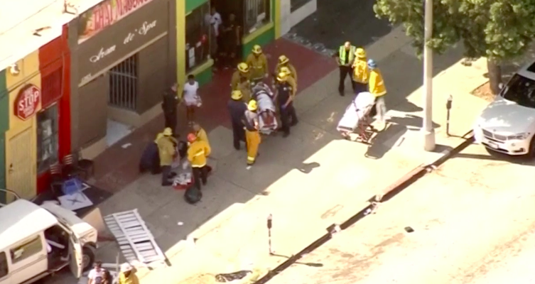 Durante este domingo en Los Ángeles, California, una camioneta chocó con otra y se desvió por la banqueta dejando un saldo de nueve heridos, uno en estado crítico.