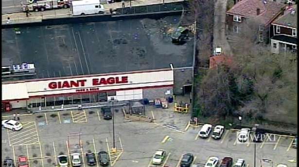 Imágenes del canal WPXI-TV mostraron que el techo de la tienda está ligeramente abajo del nivel de la calle.