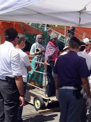 Al llegar el barco con los más de 300 migrantes rescatados, más los cuerpos de los otros 49, fueron transportados al puerto, donde estos últimos fueron colocados en un camión para llevarlos a la morgue.