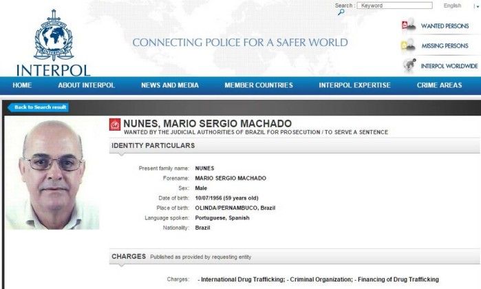 Machado Nunes, de 60 años, se encontraba en la lista de personas más buscadas de la Interpol y de la Policía Federal brasileña, pero sus registros, tanto de arrestos en Colombia como en Maranhao, mientras la orden de captura de la Justicia habían desaparecido del sistema de datos nacional.