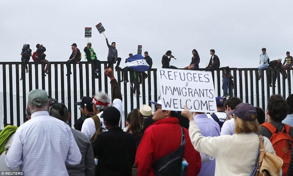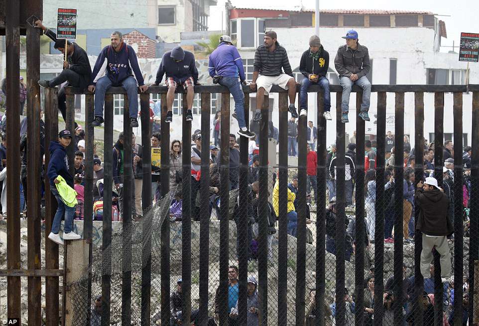 Cientos de migrantes centroamericanos llegaron el domingo a la frontera sur de Estados Unidos, donde realizaron una manifestación al lado del cerco fronterizo, y luego planean pedir asilo a las autoridades estadounidenses, desafiando directamente al gobierno del presidente Donald Trump.