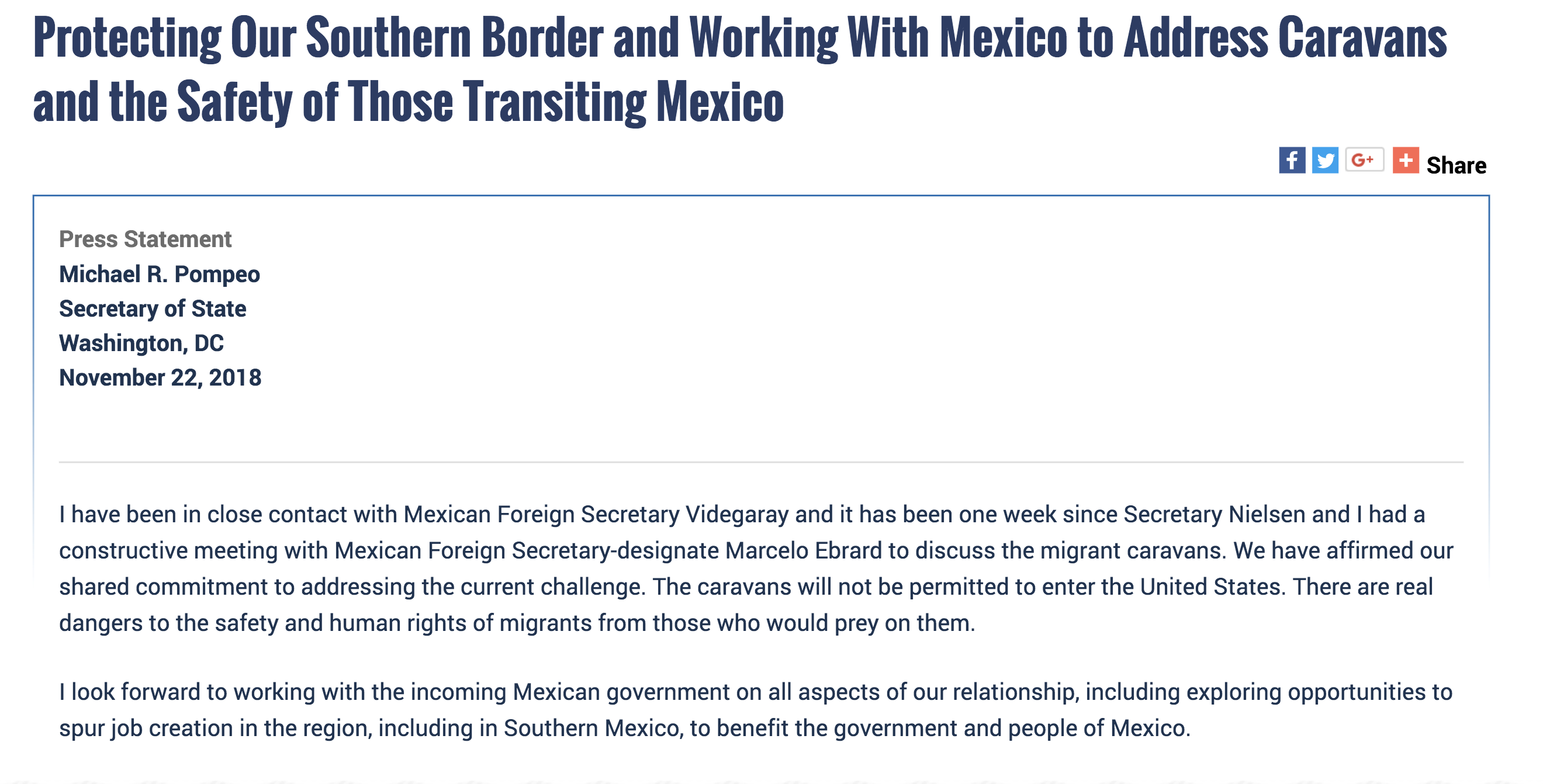 — Department of State (@StateDept) 23 de noviembre de 2018