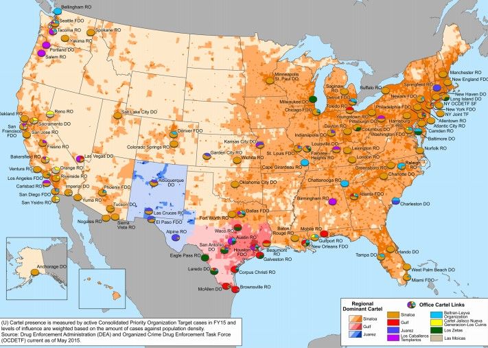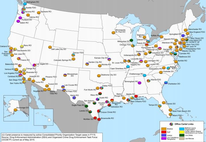 De acuerdo a la DEA, la organización del Chapo Guzmán domina las ciudades de Nueva York, Chicago, Washington D.C., Los Ángeles, San Francisco, y otras ciudades importantes, incluyendo Anchorage, la capital de Alaska.