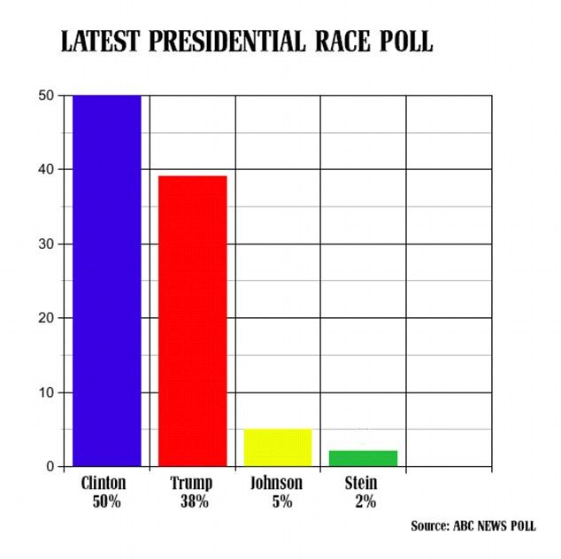 La última encuesta de ABC News muestra a Hillary Clinton con 12 puntos de ventaja sobre Donald Trump