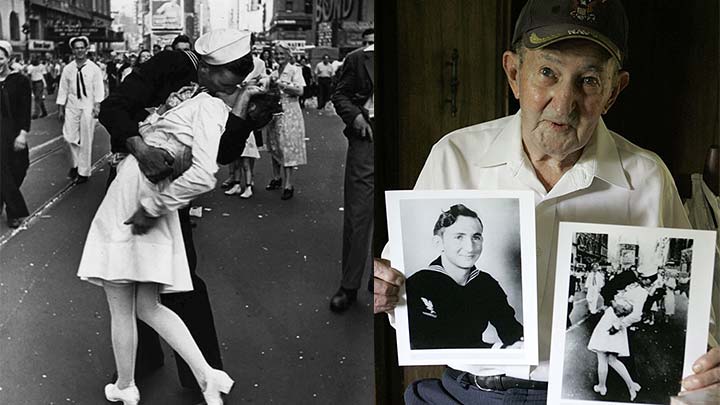 El beso original fue capturado en foto hace 70 años cuando se anunció el fin de la Segunda Guerra Mundial.