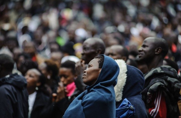 El papa invitó a Lynette y Manuel y a todos los jóvenes a alzarse y tomarse de la mano como un signo contra el tribalismo mientras repetía: “Todos somos una nación”.