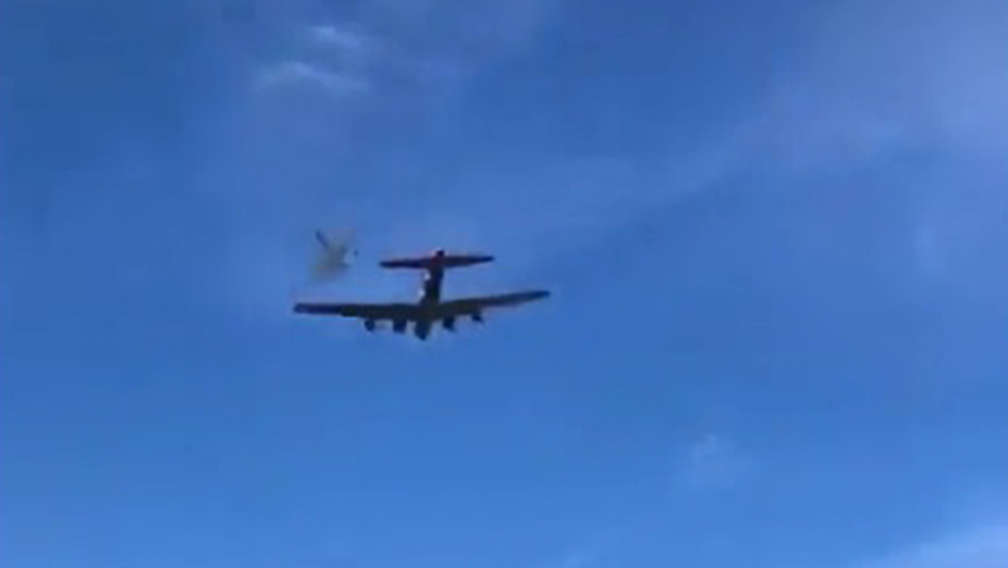 Por causas que están aun por determinar, los dos aviones de guerra antiguos, un Boeing B-17 Flying Fortress y un Bell P-63 Kingcobra, chocaron en el aire y cayeron en una autopista, que tuvo que ser cortada en las dos direcciones.