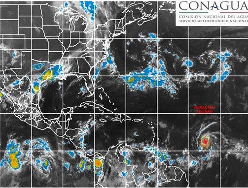 Danny se ubicaba en la latitud 12.5 norte y longitud 44.8 oeste. Se mueve al oeste noroeste a 19.3 km por hora y está a mil 775 km al este de las Antillas Menores y a 4 mil 561 km al este de las costas de Quintana Roo.