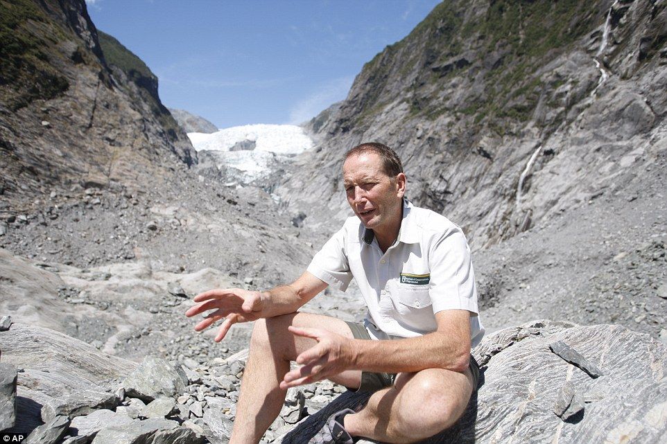 Entrevistado en la base del glaciar Franz Josef, Wayne Costello, director de distrito de operaciones del Departamento de Conservación, dijo que cuando llegó hace ocho años, las rocas de la zona estaban cubiertas por toneladas de hielo. En la actualidad, el glaciar se acaba cuando uno se adentra 800 metros (media milla) en el valle.