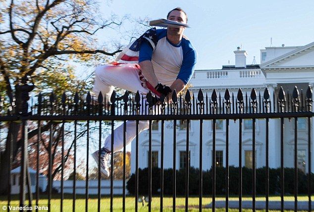 Un hombre envuelto con la bandera de Estados Unidos logró burlar al Servicio Secreto y saltar la reja principal con picos de protección de la Casa Blanca.