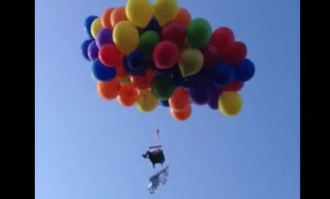 Amarró más de 100 globos rellenos con helio a una silla casera en la que estaba sentado y empezó a flotar como en Up