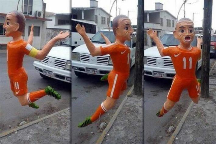 Otras piñatas son de Kim Kardashian y el jugador de fútbol holandés Arjen Robben, quien dejó a México fuera de la Copa del Mundo de 2014, con un polémico penal.