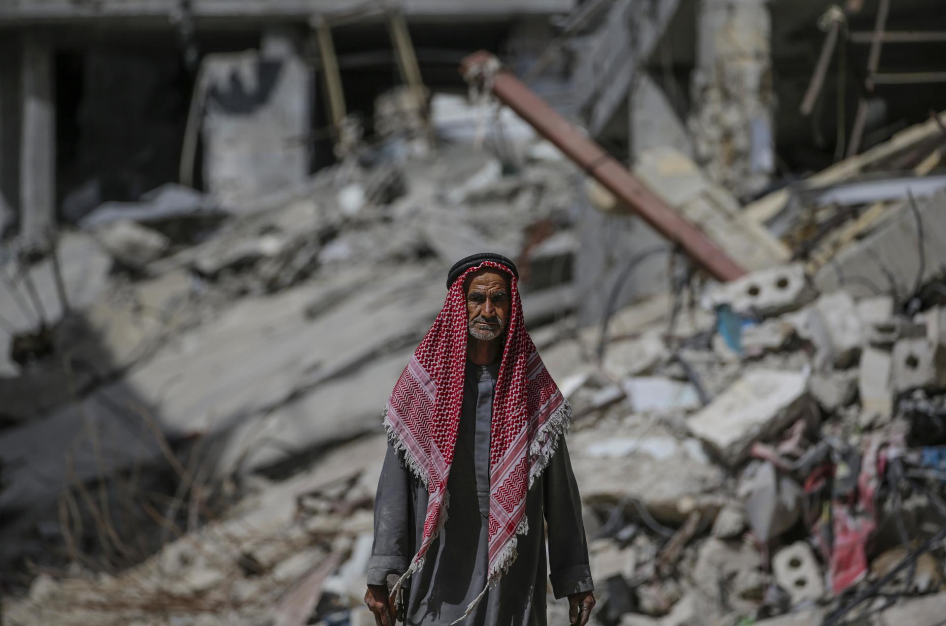 Imagen de edificios destruidos en Jan Yunis en una imagen de 22 de abril de 2024. Foto de EFE/EPA/MOHAMMED SABER