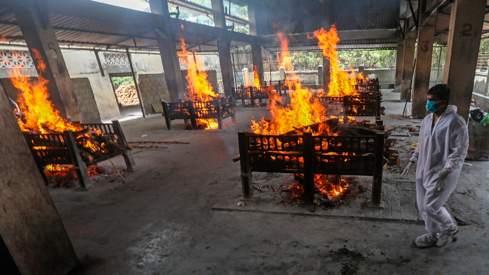 Fueron captadas imágenes de crematorios al aire libre en la India, país que se encuentra en pleno desbordamiento por el COVID-19