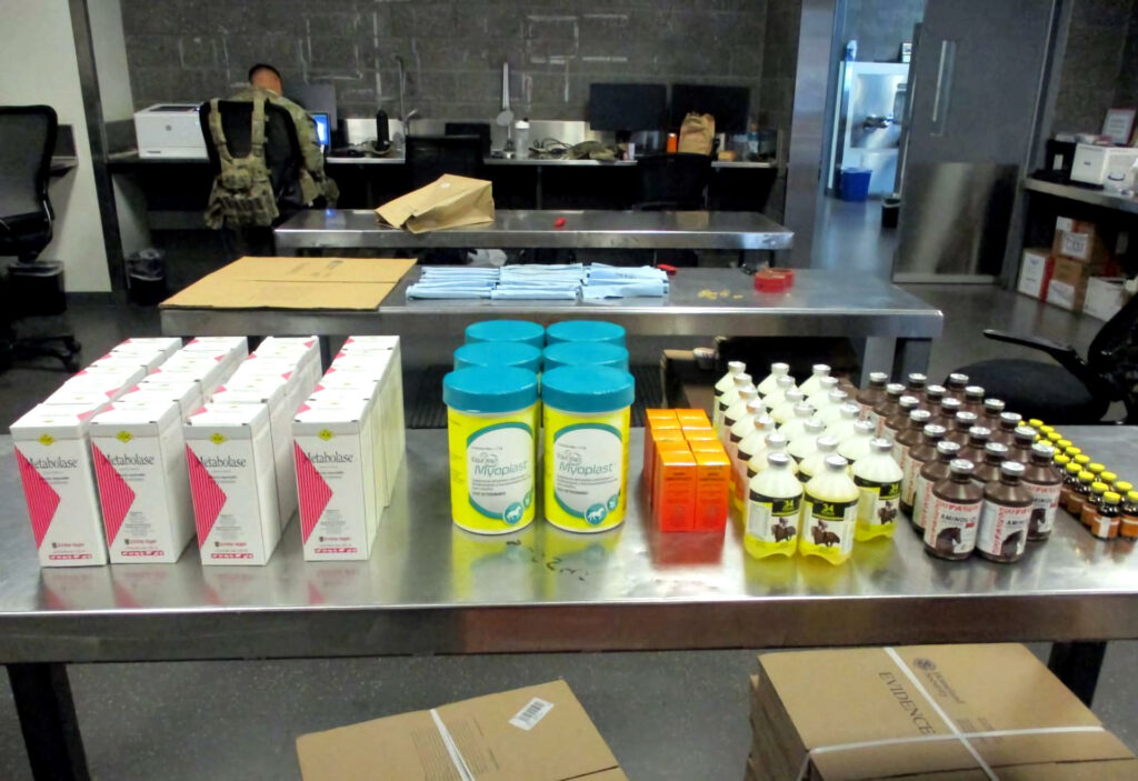 Sin embargo, una inspección del vehículo dejó al descubierto un total de 690 púas metálicas que se emplean para armar a los gallos en las riñas, y diversos medicamentos de uso veterinario que estaban ocultos en diferentes partes de la camioneta.