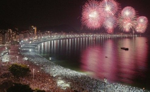 La principal fiesta de Río de Janeiro se realizó en la playa de Copacabana que tuvo dos temáticas: el centenario de la samba y el inicio del año para la ciudad que recibirá los Juegos Olímpicos en agosto. Se calcula que más de 2 millones de personas asistieron a las playas para la celebración.