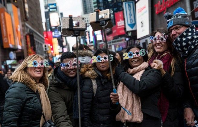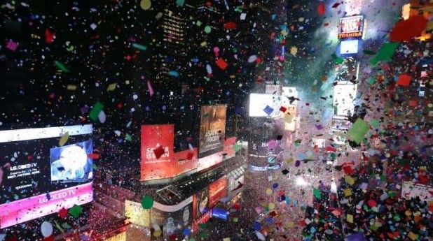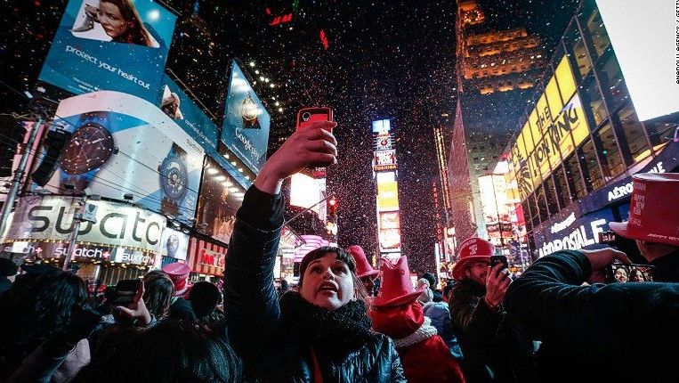 Más de un millón de personas de todo el mundo se congregan en Times Square, en Nueva York, para recibir el 2016 con el tradicional descenso de la bola de cristal y un espectáculo de fuegos artificiales.
