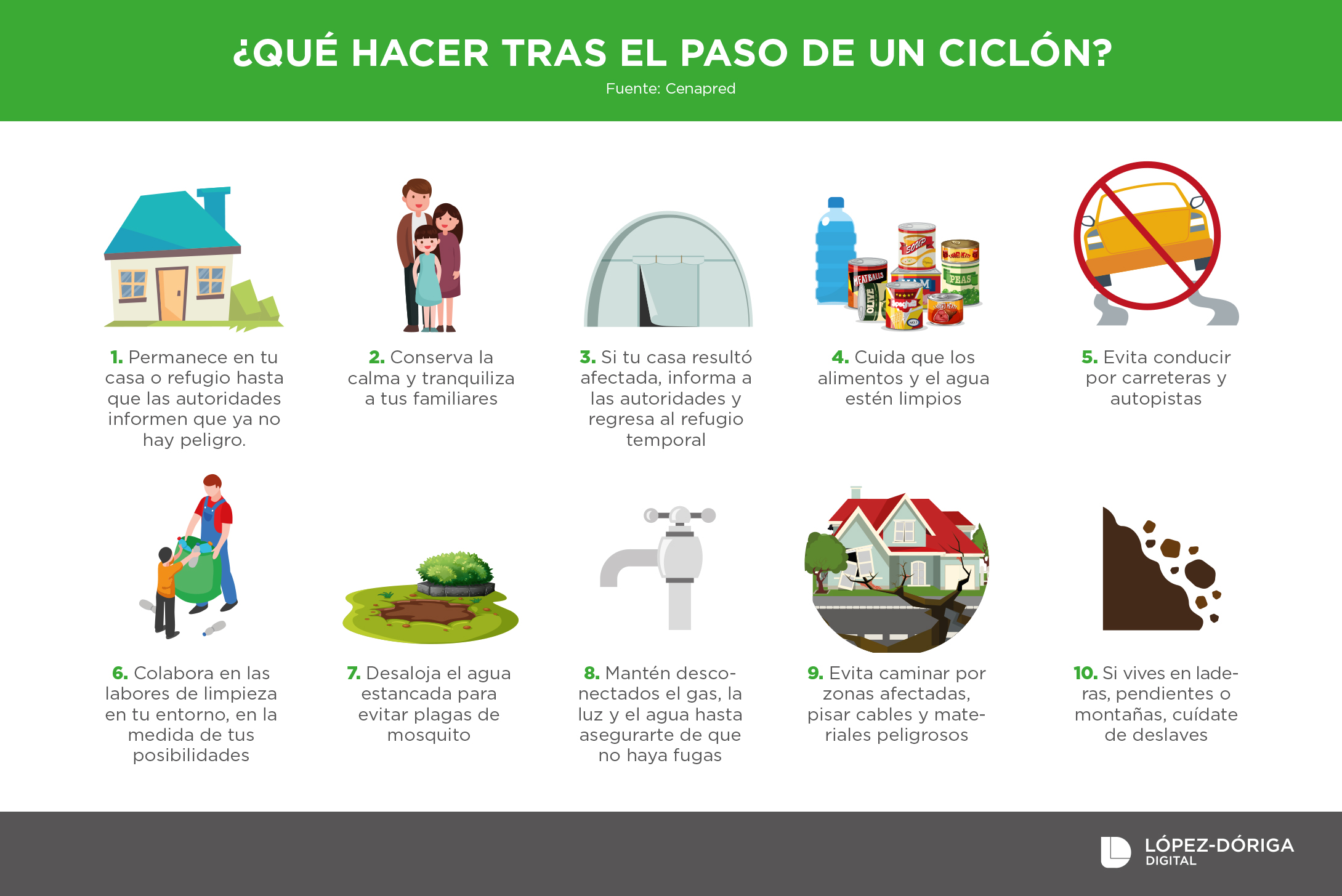 La Coordinación Nacional de Protección Civil (CNPC) ha emitido una serie de recomendaciones para mantenerse a salvo tras el paso de un fenómeno meteorológico.
