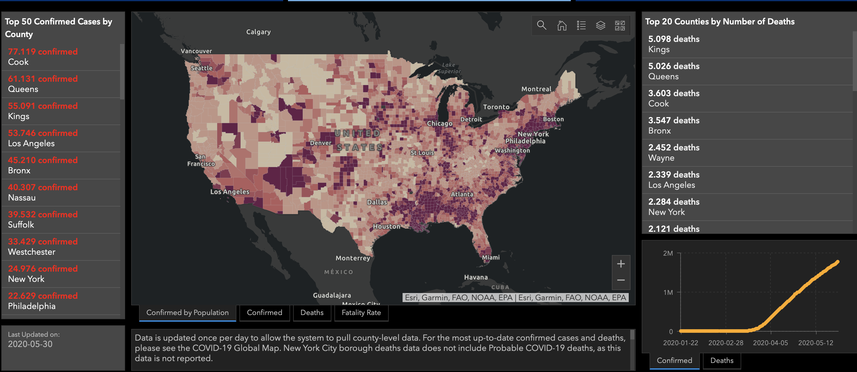 Estados Unidos alcanzó este domingo la cifra de 1 millón 779 mil 853 casos confirmados de COVID-19 y la de 104 mil 81 fallecidos, de acuerdo con el recuento independiente de la Universidad Johns Hopkins.