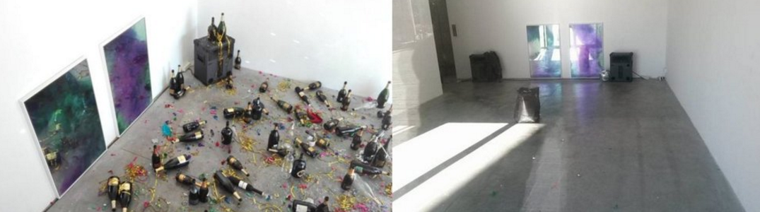 “¿A dónde vamos a bailar esta noche?” de las artistas Sara Goldschmied y Eleonora Chiari, consistía en restos de botellas de champán, colillas, confeti y serpentinas, es por eso que provocó confusión, sobre todo porque la noche anterior se celebró una fiesta en el recinto cultural.