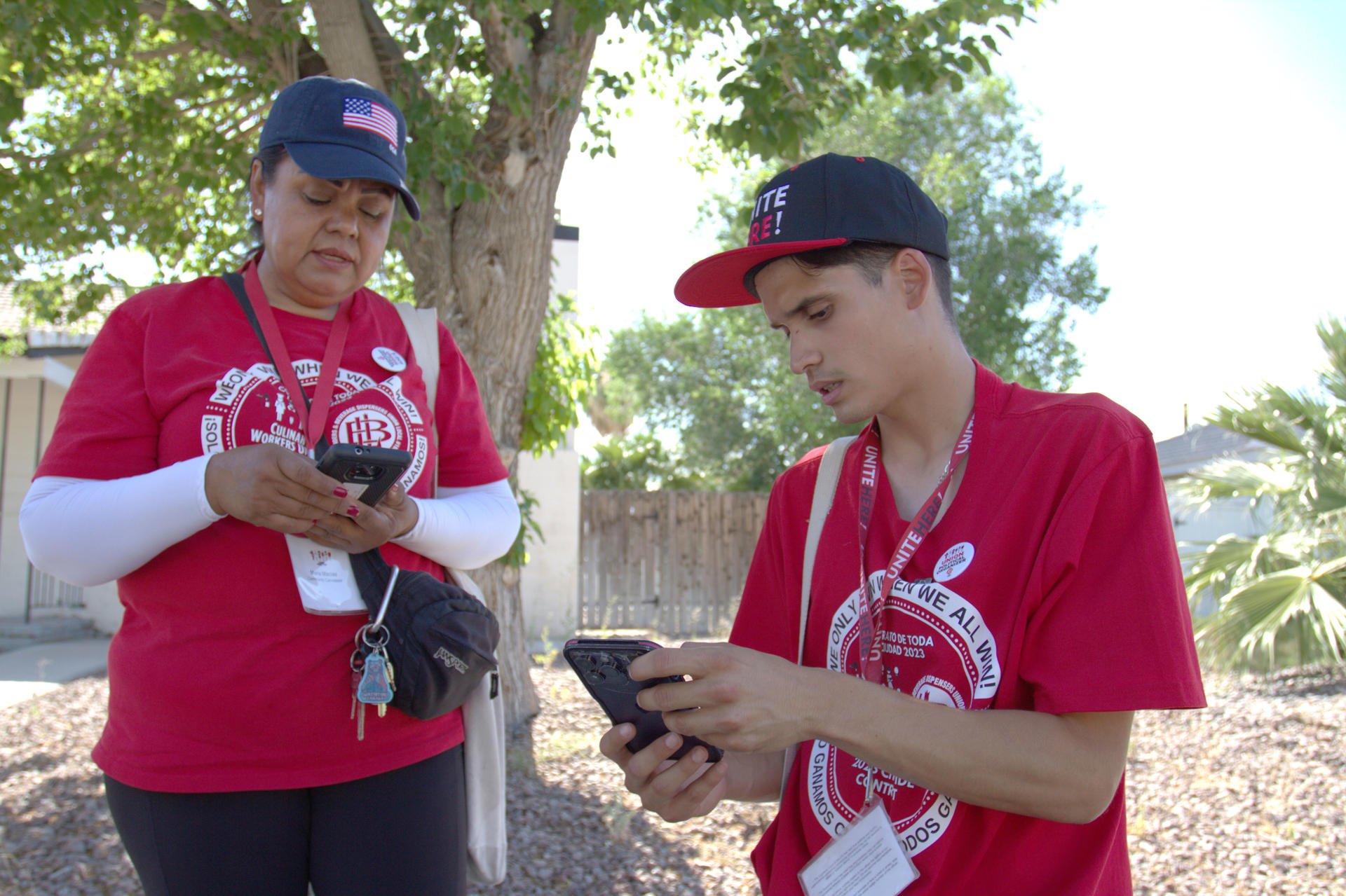 Los dos hispanos hacen parte de los esfuerzos de la Unión de Trabajadores Culinarios, que agrupa a 60 mil trabajadores de los hoteles de Las Vegas (la mayoría mujeres migrantes) y es un actor clave en las elecciones del estado decisivo de Nevada para movilizar a votantes demócratas.