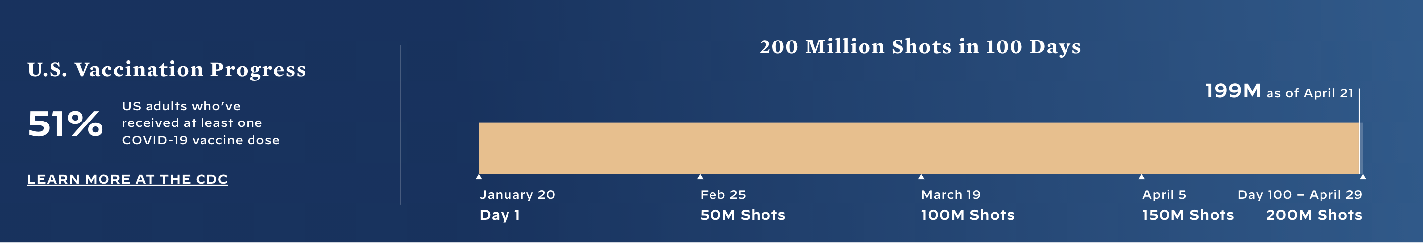 Estados Unidos alcanzará este jueves 200 millones de vacunaciones contra COVID-19, cifra que el presidente del país, Joe Biden, había prometido lograr en sus primeros 100 días de Gobierno y que se alcanza una semana antes de cumplirse dicho periodo.
