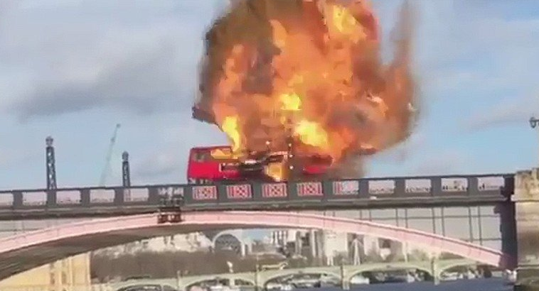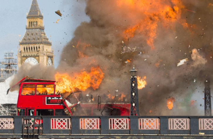 Un autobús estalló en el centro de Londres el domingo, pero esta vez se trató solo de un truco para la filmación de una película.